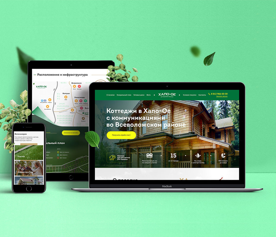 Разработка посадочной страницы и элементов брендинга для коттеджного поселка Хапо-Ое