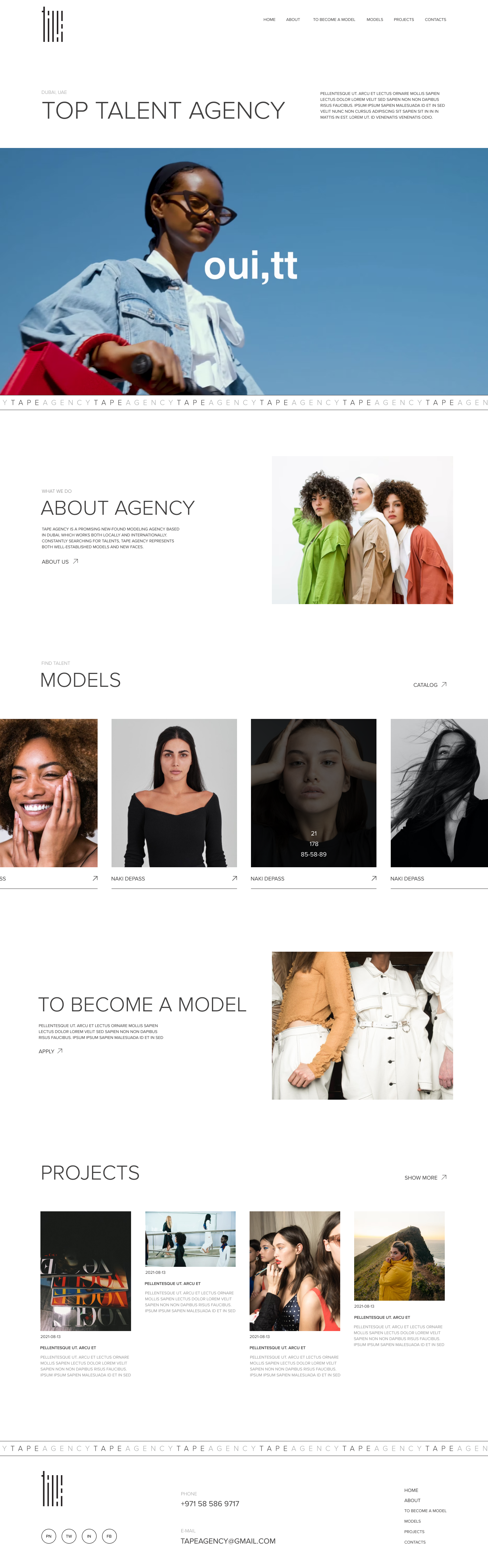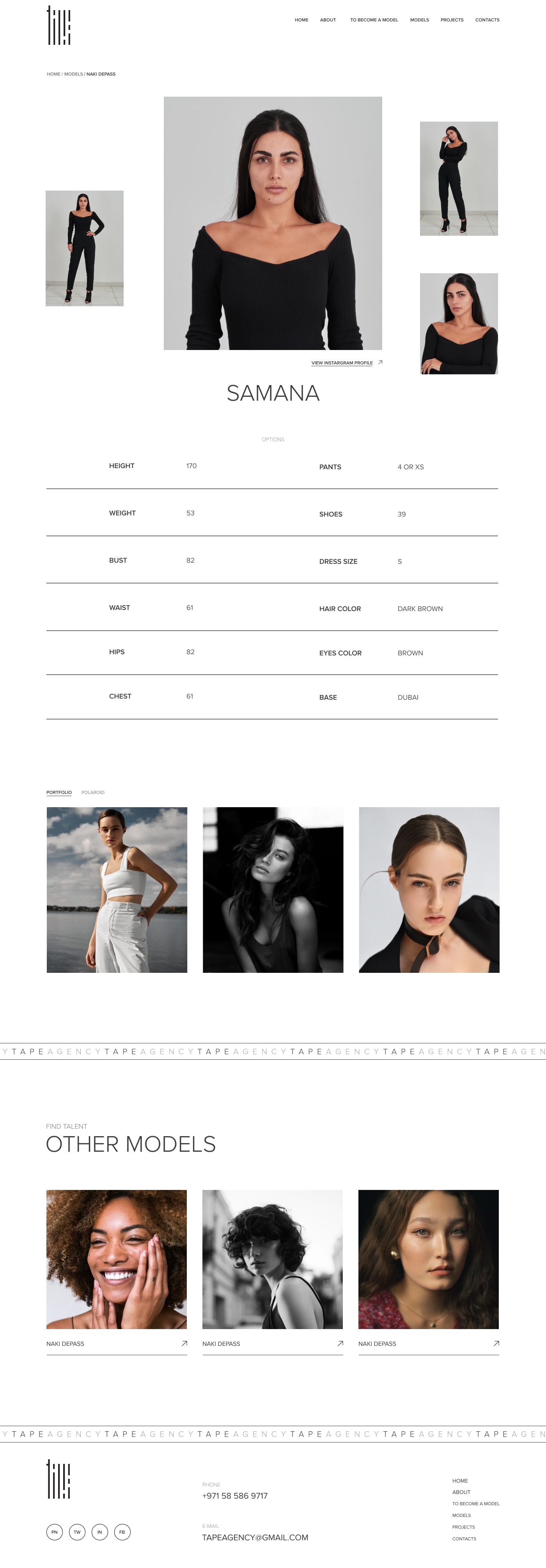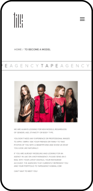 TAPE AGENCY is a promising new-found modeling agency based in Dubai, which works both locally and internationally. Constantly searching for talents, TAPE AGENCY represents both well-established models and new faces.